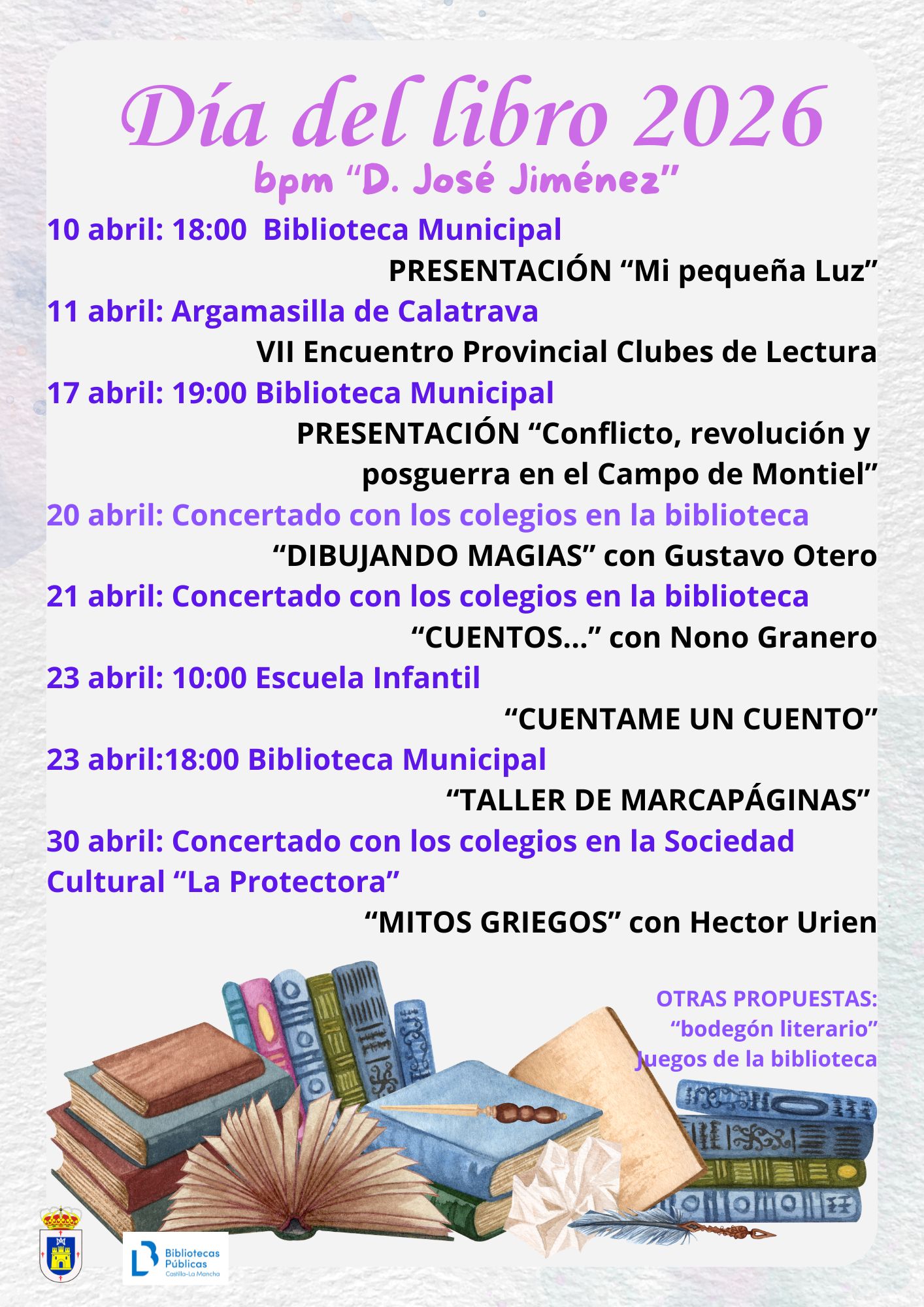 Adjuntamos el programa actividades preparadas en la Biblioteca Pública Municipal de Membrilla para el Día del Libro.